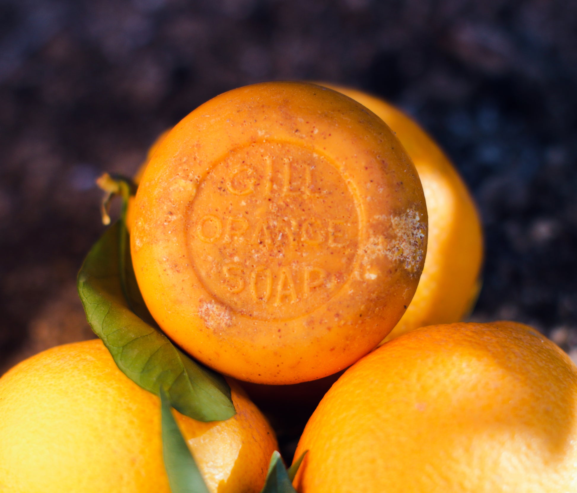 Each bar combines heirloom California navel orange essential oil with real dried orange peel for gentle exfoliation and a clean, zesty fragrance. Naturally rich in Vitamin E, it conditions as it cleans—leaving hands and skin smooth, soft, and lightly scented with the true aroma of fresh oranges.