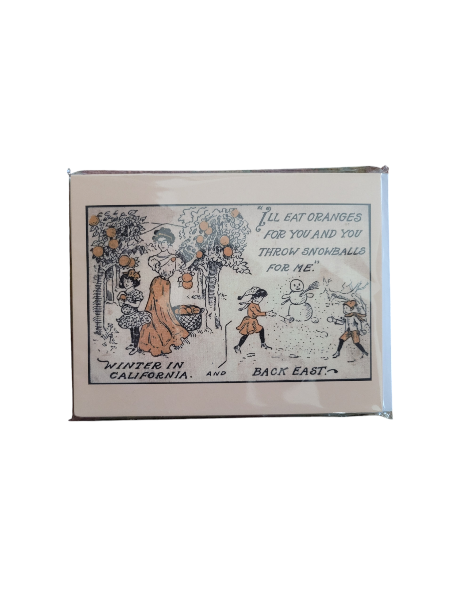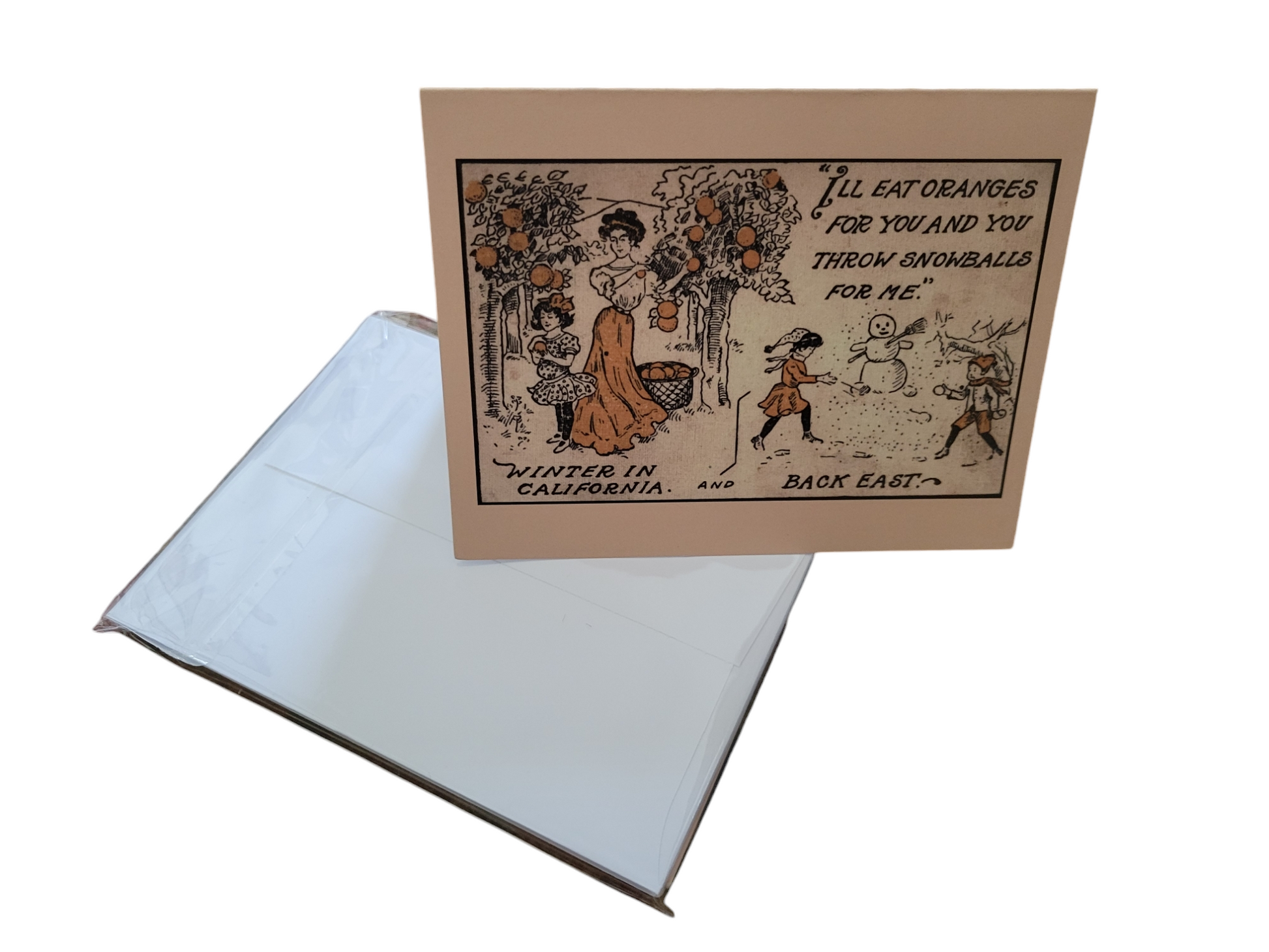 Celebrate the season with a touch of vintage California charm. This five-card set features a 4x6 vintage reproduction from our family archive—originally sent by our great-grandfather from Southern California to relatives back in Pennsylvania, sharing a little citrus sunshine with snowbound loved ones.